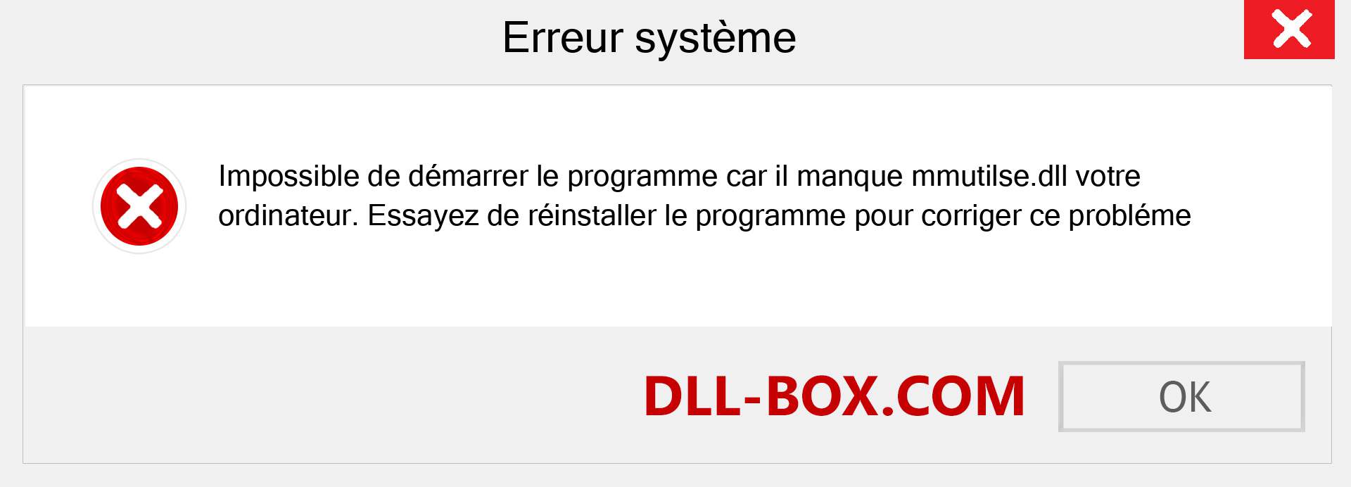 1. Le programme ne peut pas démarrer car mmutilse.dll est absent de votre ordinateur. Essayez de réinstaller le programme pour résoudre ce problème.